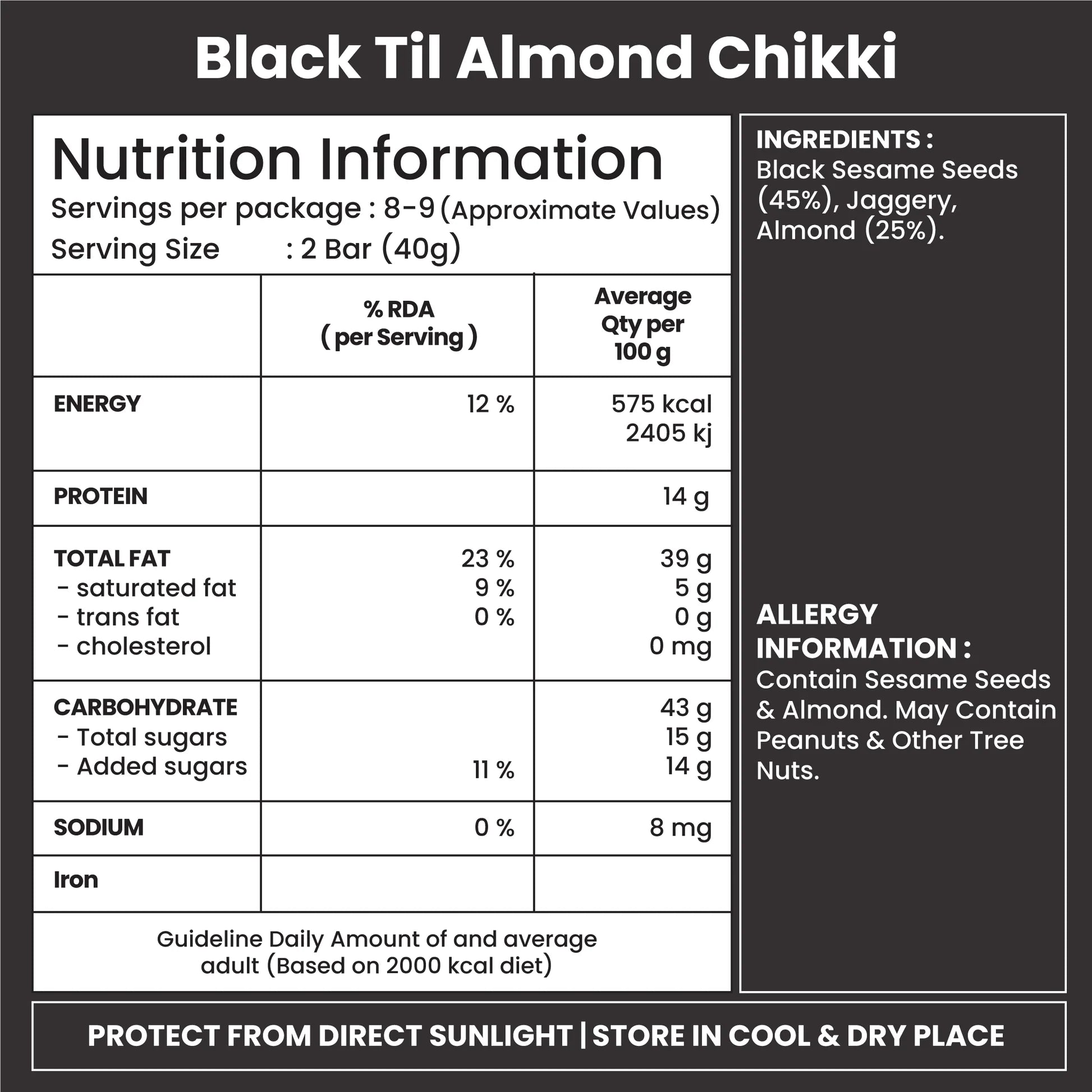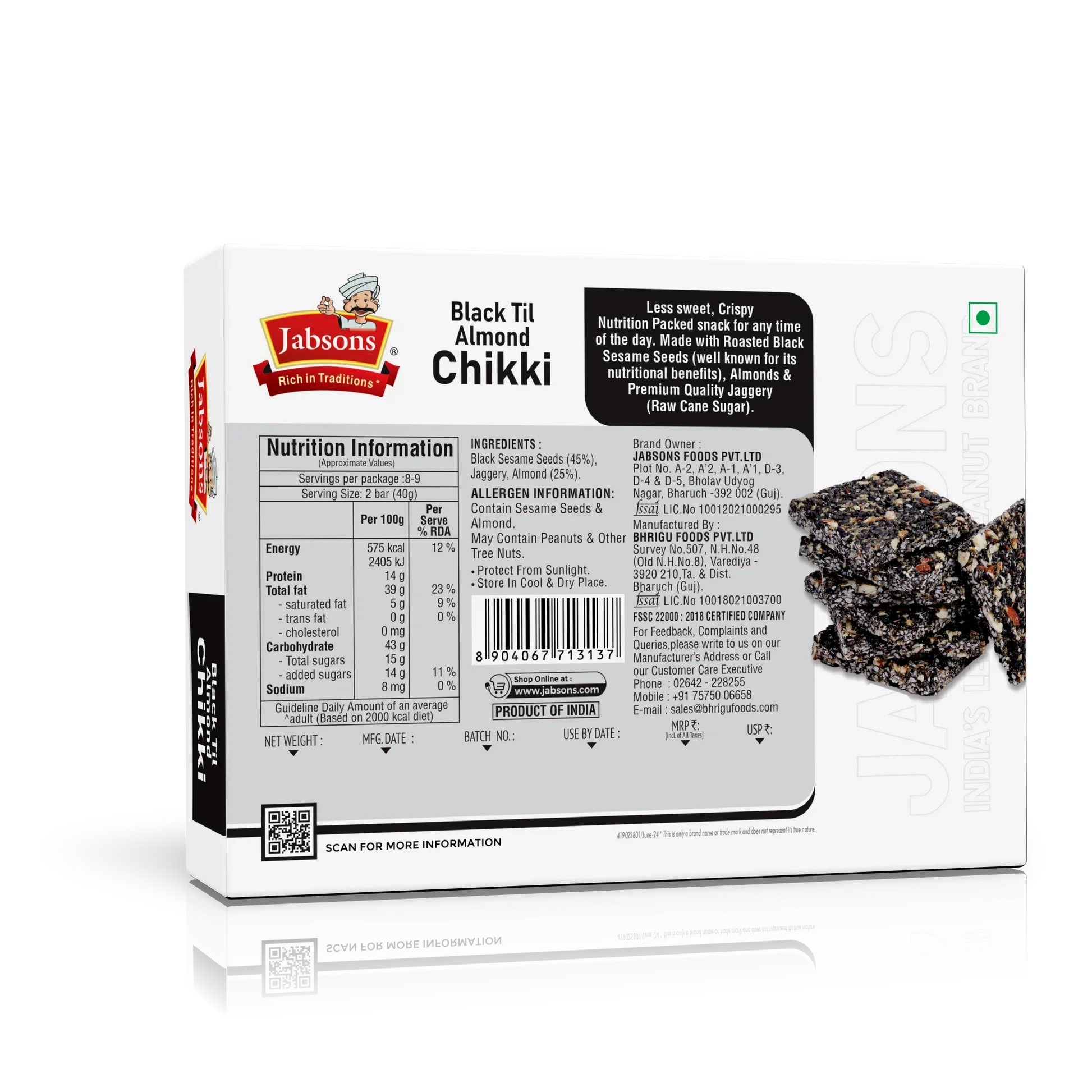 Jabsons Black Til Almond Chikki - 270 Gm (9.52 Oz)