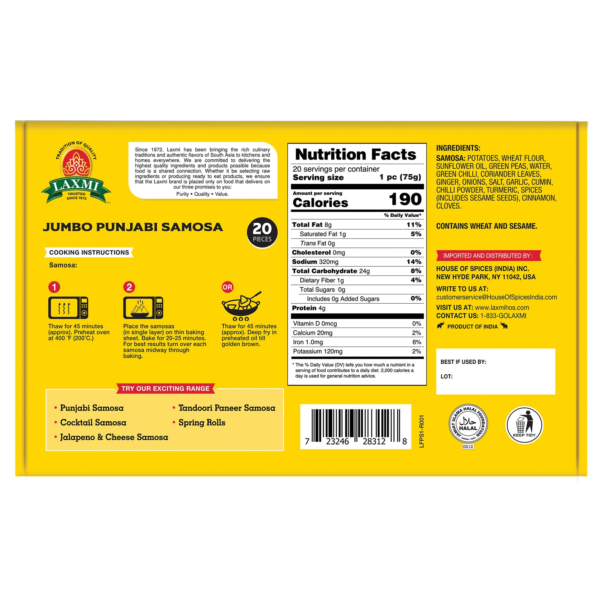 Laxmi Jumbo Punjabi Samosa 20 Pc - 1.5 Kg (53 Oz)